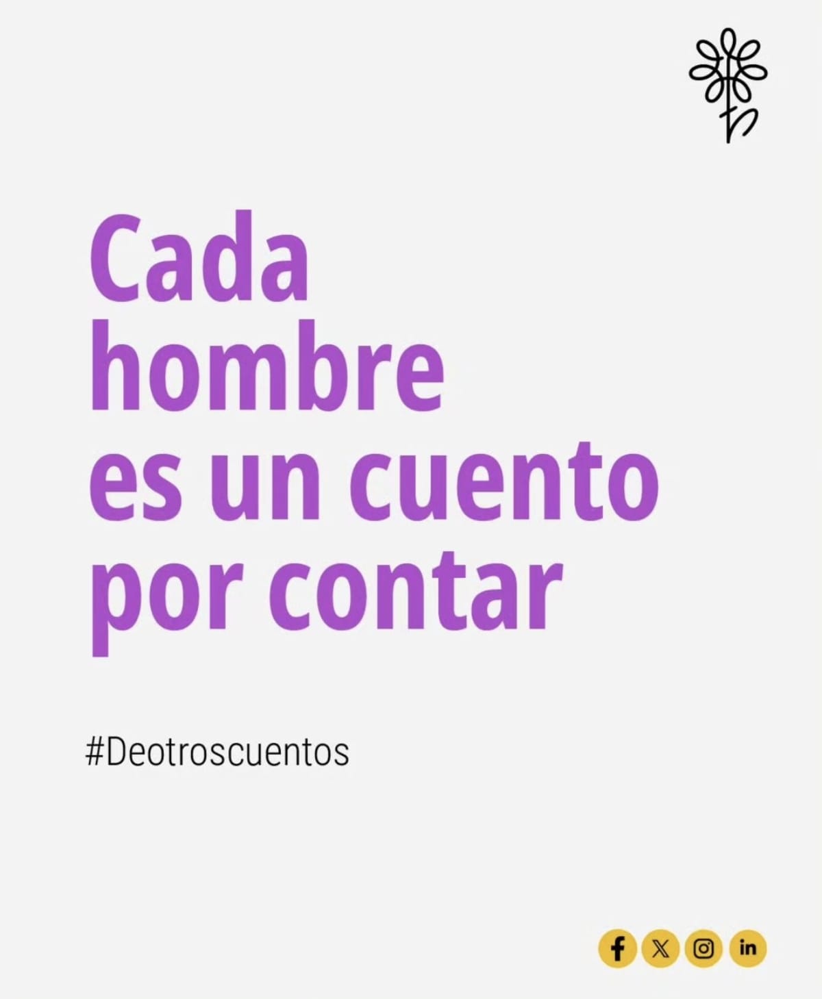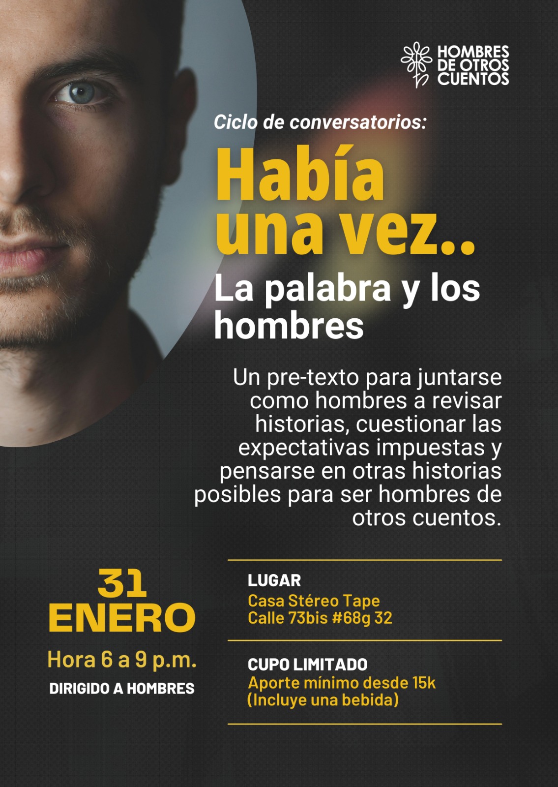 Hombres De Otros Cuentos impulsa un proyecto de exploración metodológica en el trabajo con hombres, que busca desde sus códigos masculinos, alternativas novedosas de convocatoria y de encuentro que permiten reconocer las nuevas expectativas que se tienen sobre los hombres, y la indagación sobre sus necesidades actuales, para el desarrollo y fortalecimiento de habilidades socioemocionales que promuevan la corresponsabilidad y la no violencia.